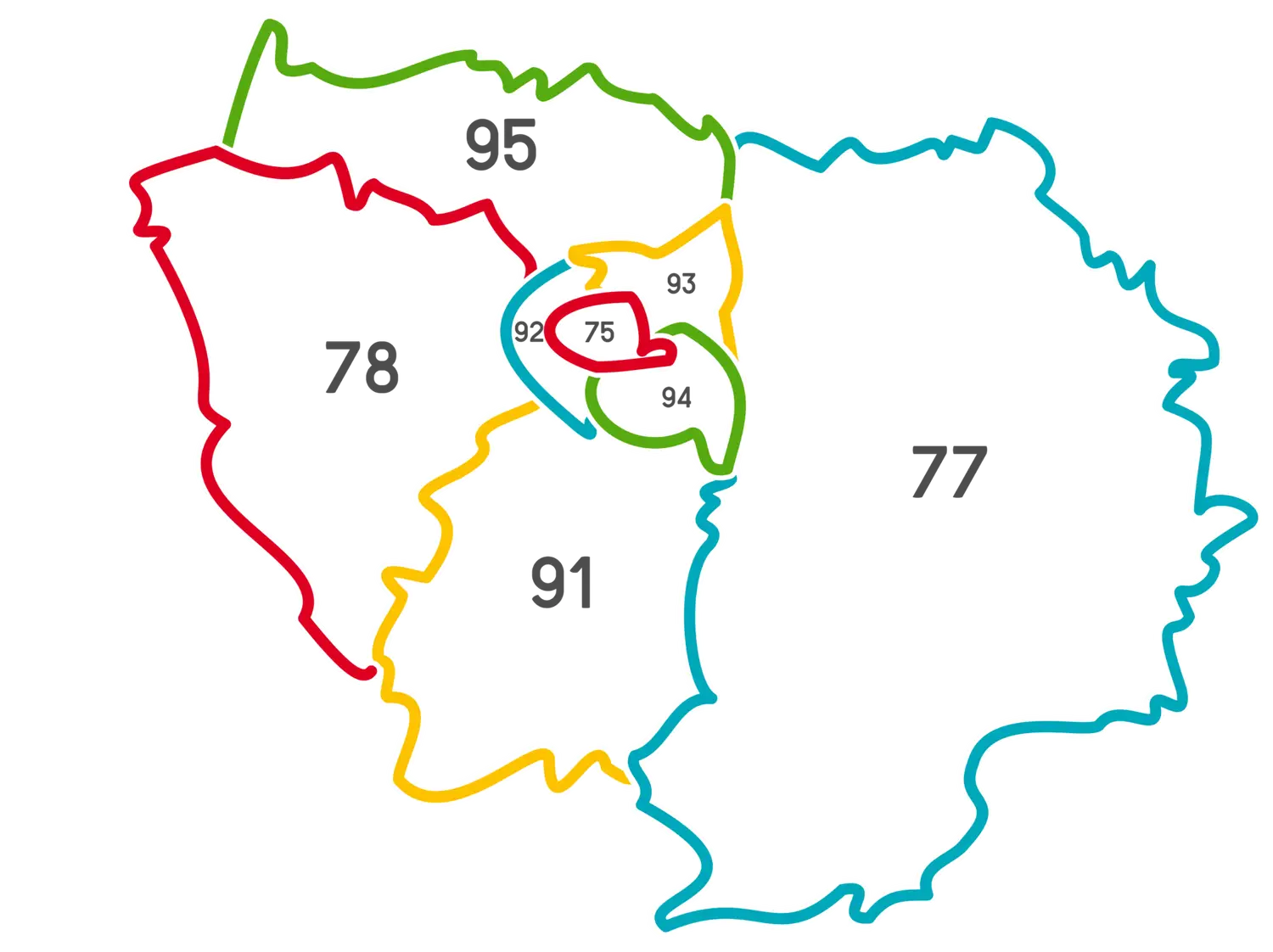 Paris (75), Seine-et-Marne (77), Essonne (91), Hauts-de-Seine (92), Val-de-Marne (94), Évry-Courcouronnes, Le Coudray montceaux, Corbeil-Essonnes, Massy, Savigny-sur-Orge, Sainte-Geneviève-des-Bois, Palaiseau, Athis-Mons, Vigneux-sur-Seine, Ris-Orangis, Brétigny-sur-Orge etc…